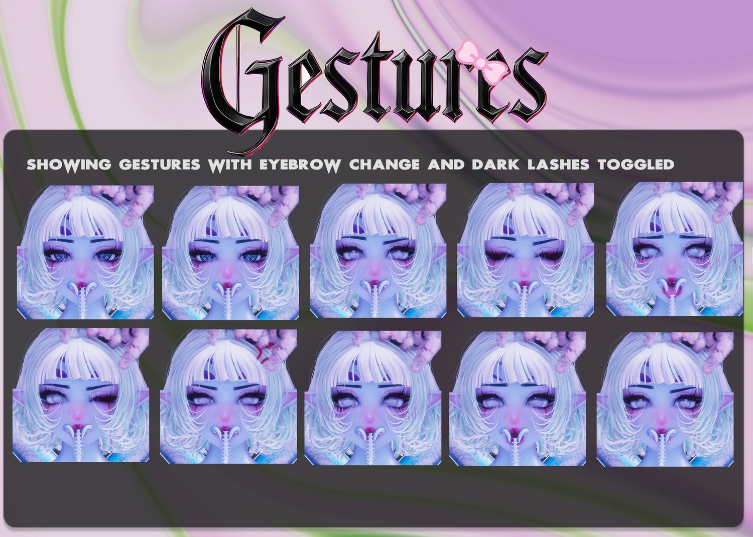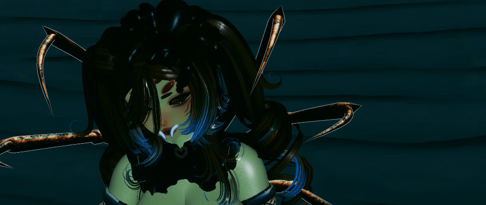 Head (heavily edited by Spooky NO REUSEEE)| Base Heavily edited by Spooky NO REUSE| LEGS | Mask| Heels | Outfit, sleeves| Hair | Hairs | Flow Toys | Edits, Emissions, Hair textures all Done by Shipwreck and Spooky unless stated otherwise. Base edited by Spookiness DO NOT REUSE OUR TEXTURES, MATCAPS, OR EDITS OF ITEMS.